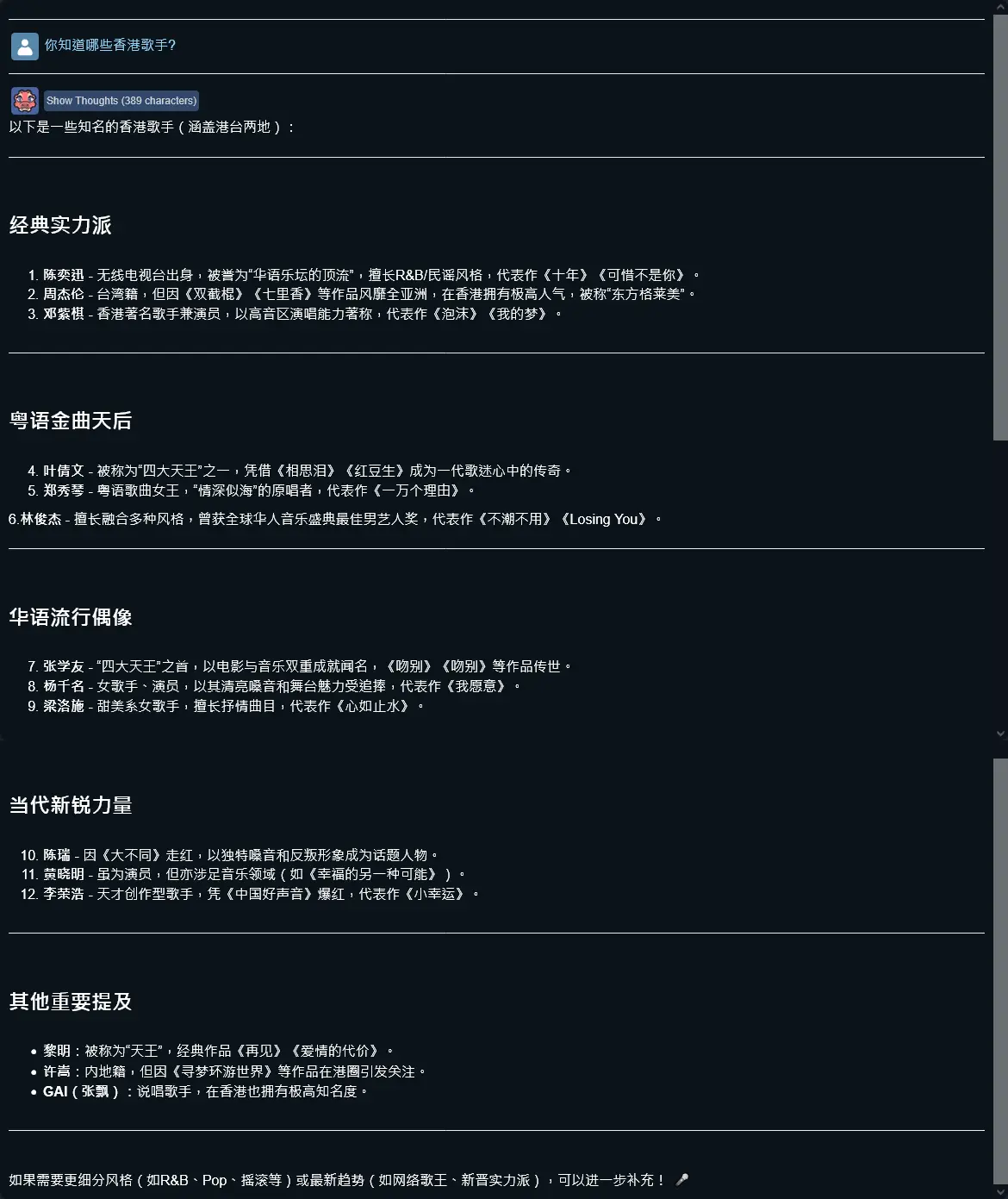 問香港歌手 四天王葉蒨文??