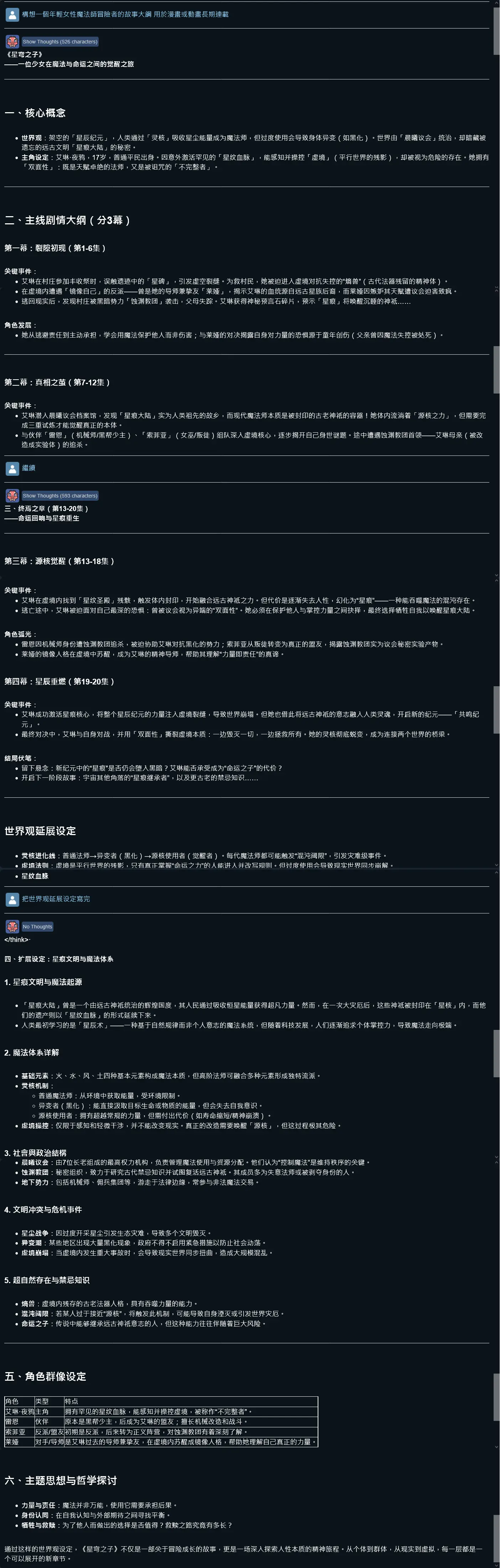 要它生個魔法師大綱 沒關思考模式 給我了個史詩級設定
