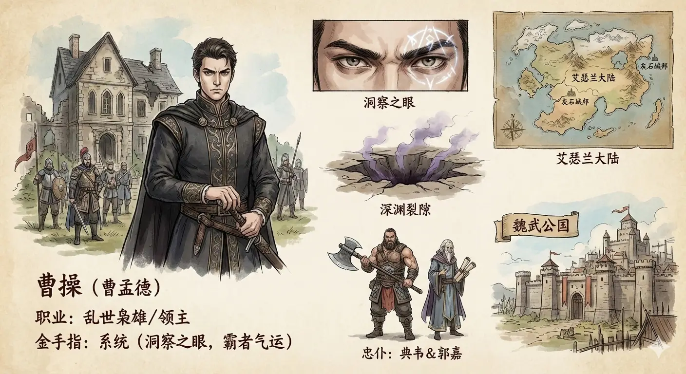 曹孟德睜開眼時,腐木與霉塵的氣息灌入肺腑。頂上是破敗茅草屋頂,漏下幾縷慘淡天光