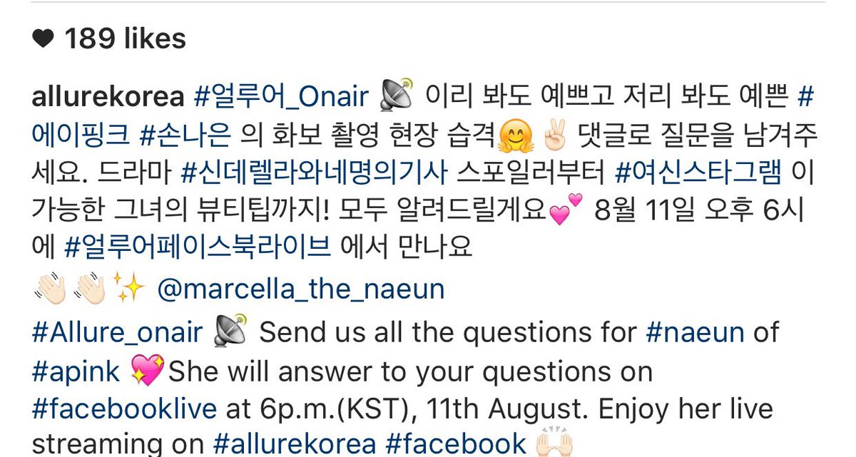 推 akipon: 娜恩8/11韓國下午6點會在allure korea開FB live 08/09 03:03