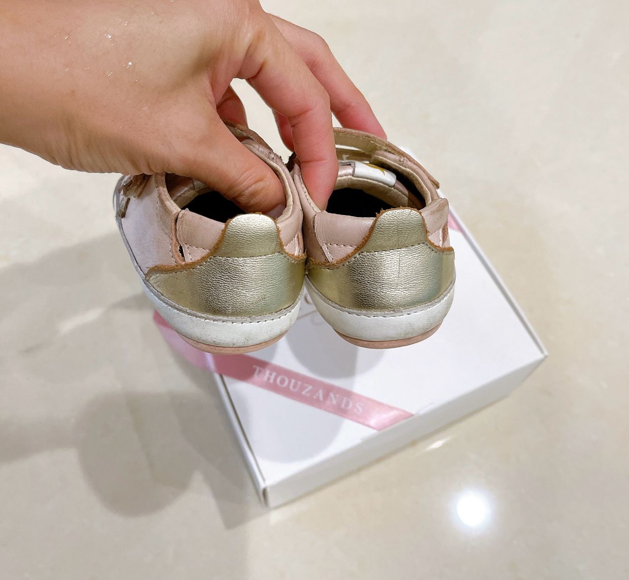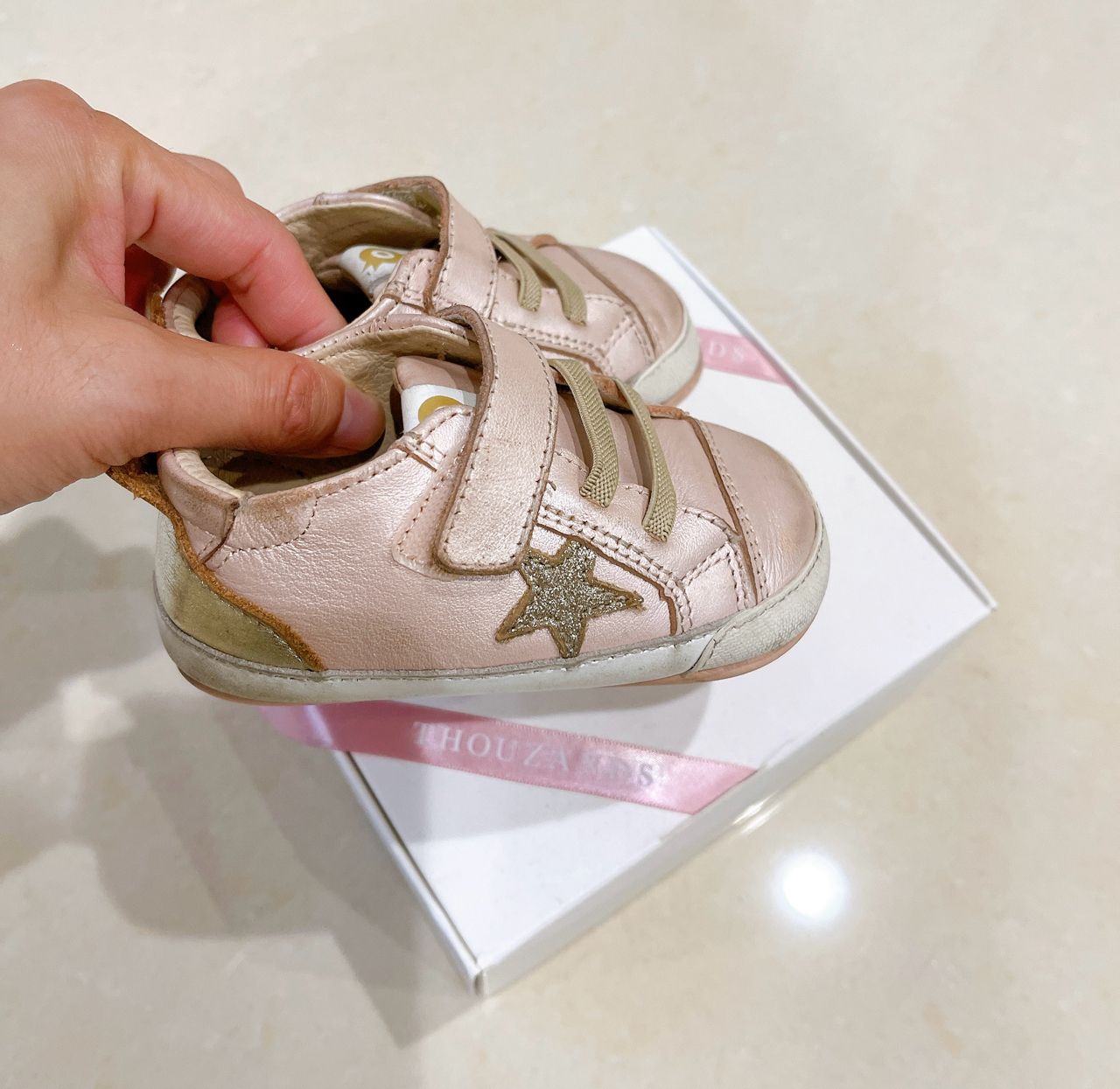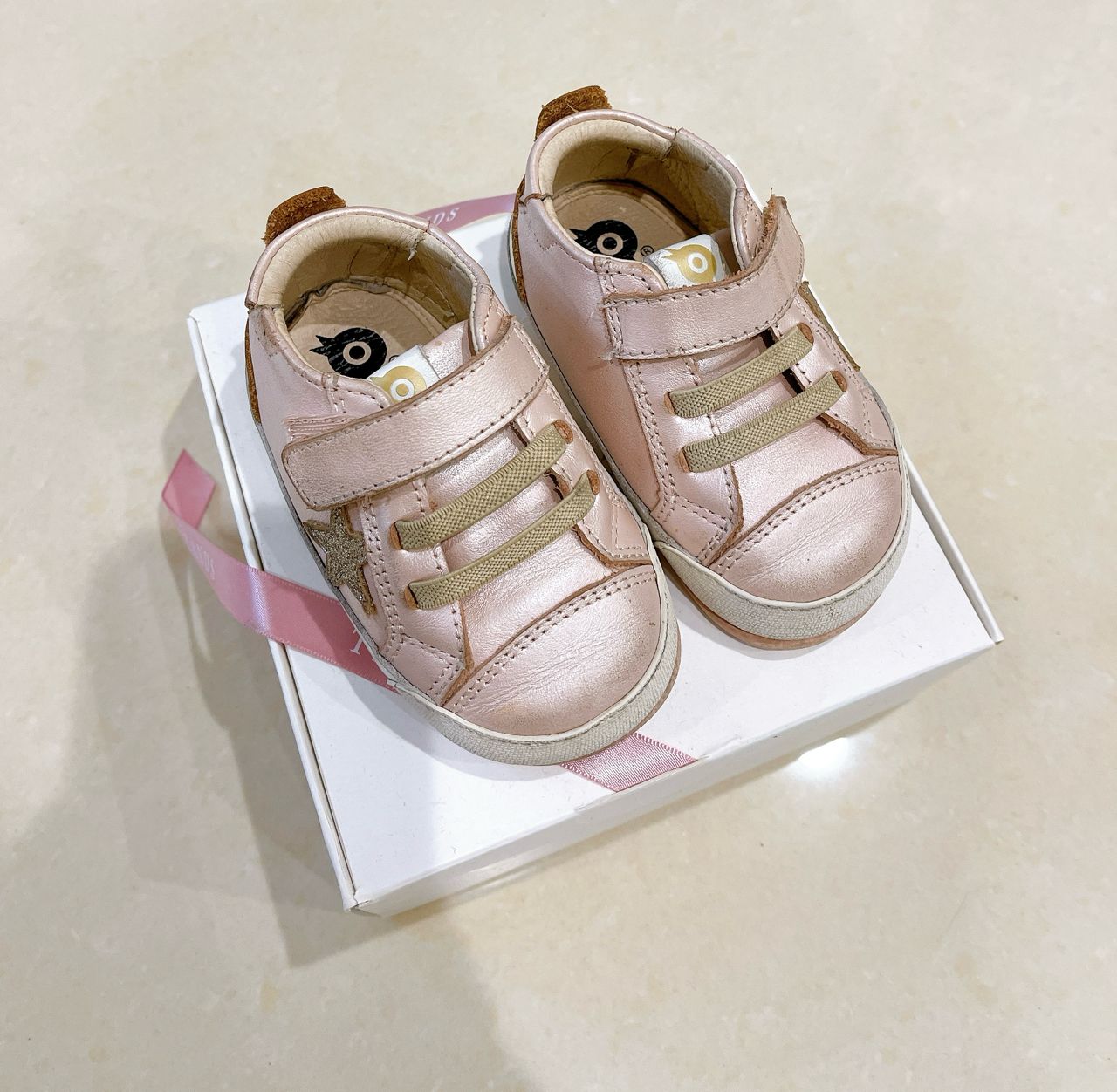 1. oldsoles 金粉蔥色學步鞋EU20,約12-13cm,真皮材質。$350 附盒。