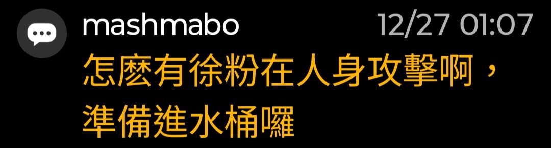 → mashmabo: 說錯話 看到我的推文 怕被檢舉被水桶 才改變言詞 12/27 13:42