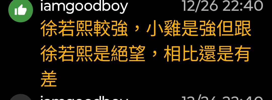 → huihuiiiii: 「在這裡吹捧徐若熙是流行趨勢,什麼大聯盟前段輪值 12/27 10:07
