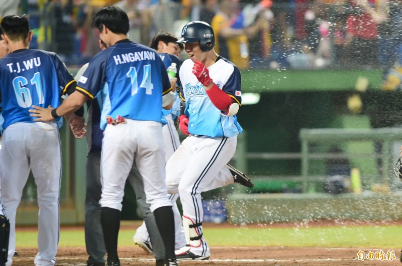 兄弟詹子賢於延長賽敲出再見全壘打。(記者廖耀東攝)