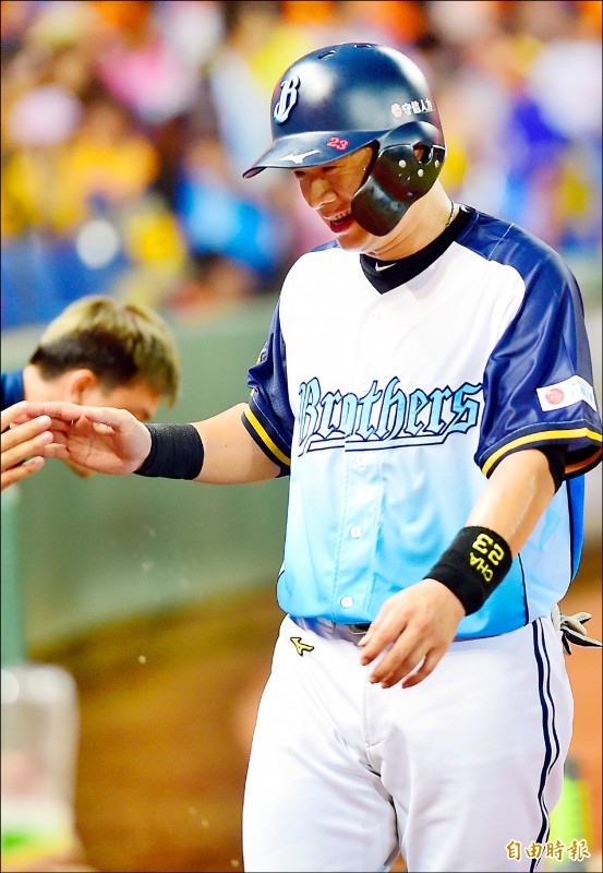 兄弟彭政閔昨跑回2分,再2分就能超越張泰山,躍居中職得分王。(記者廖耀東攝)