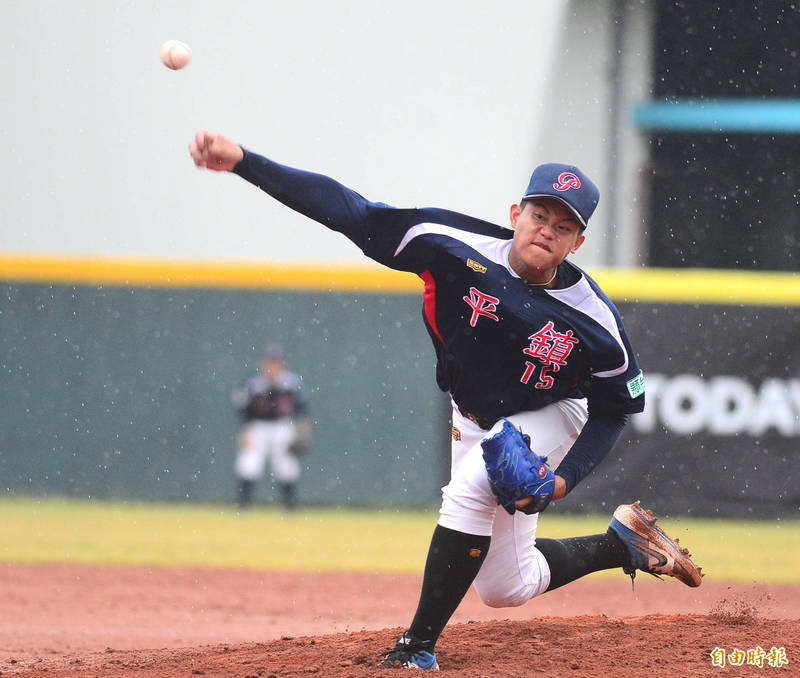 平鎮高一投手王彥恩完投7局猛飆10次三振。(記者王藝菘攝)