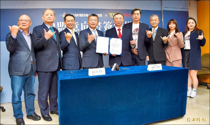 近30家媒體昨擠爆中職聯盟大會議室,當台鋼集團會長謝裕民與中職會長蔡其昌簽訂並展