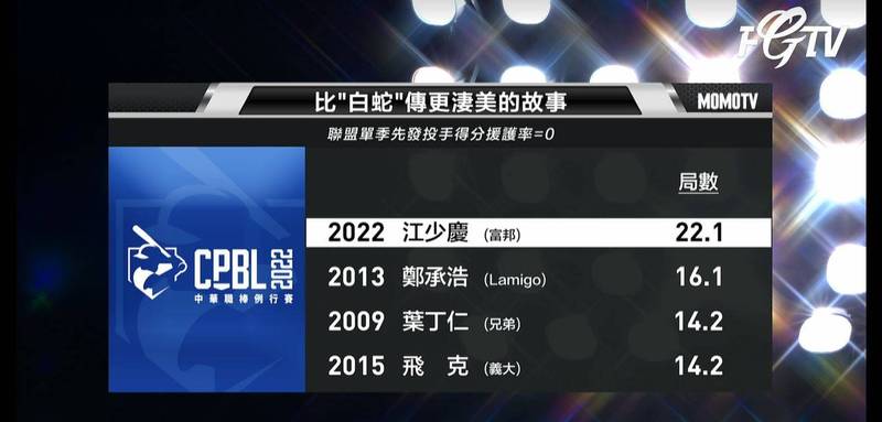 卡指出,他超越2013年Lamigo桃猿鄭承浩的16.1局,寫下聯盟單季先發投手得分