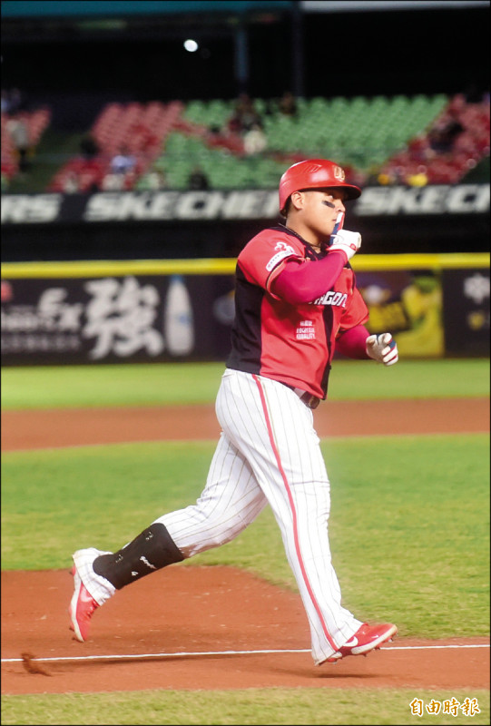 龍隊吉力吉撈.鞏冠首局敲出2分砲,本季第14轟出爐。(記者廖耀東攝)