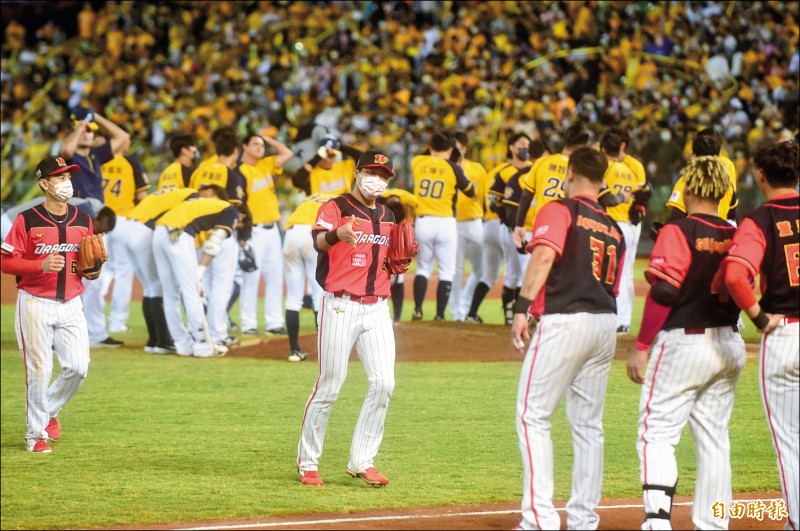 兄弟連兩天不敵龍隊,在洲際球場拋下半季封王彩帶的希望落空。(記者廖耀東攝)