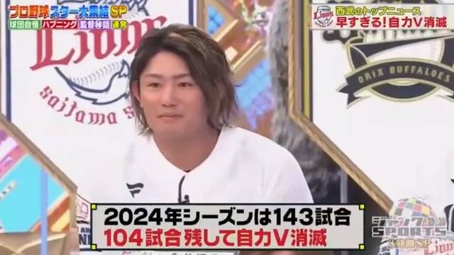 女主持人:在這裡補充情報,西武隊2024年球季要打143場比賽,在還剩下104