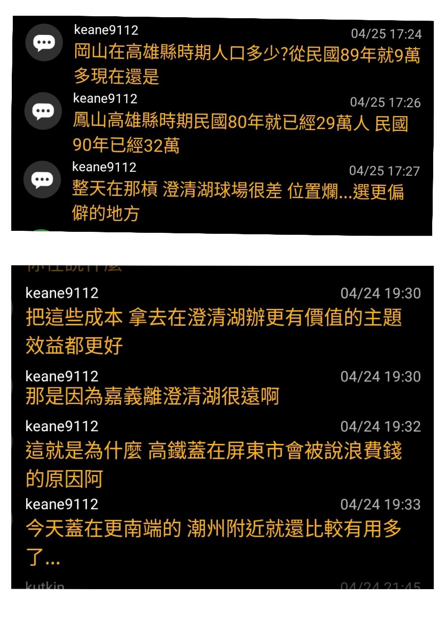 → kutkin: 現在變你可以提屏東高鐵 別人不能講你說過的 04/25 18:12