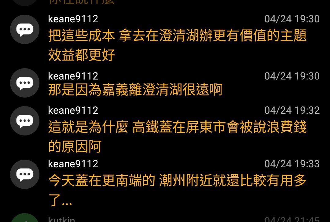 → kutkin: 「你想槓高鐵 麻煩你去軌道板發一篇文吧」 04/25 18:13