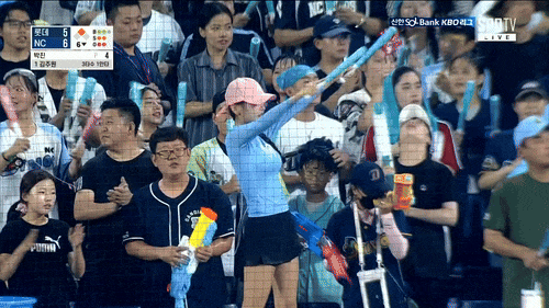 標題[閒聊] 韓國 NC恐龍啦啦隊 玩水日的轉播畫面