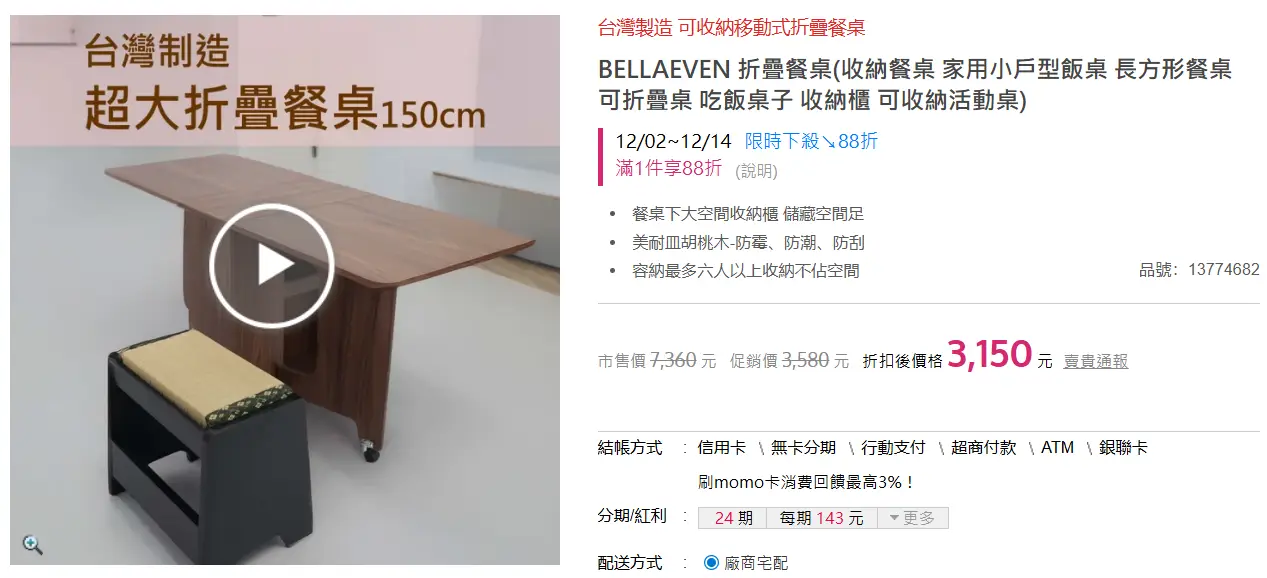推 bxxl: 是要伸縮(變6人桌)還是折疊的?12/14 12:12