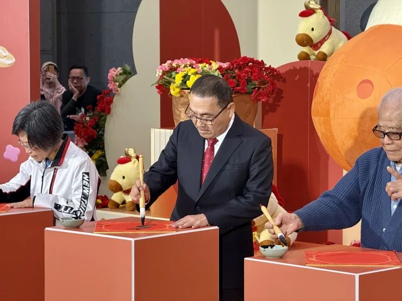 新北市長侯友宜現場揮毫展現書法功底。記者張策/攝影