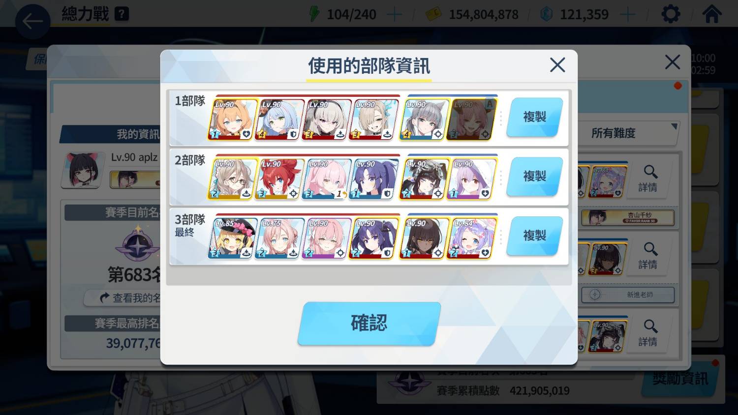 借皐月 專3 LV90 MMMM 絆50 攻擊力8122