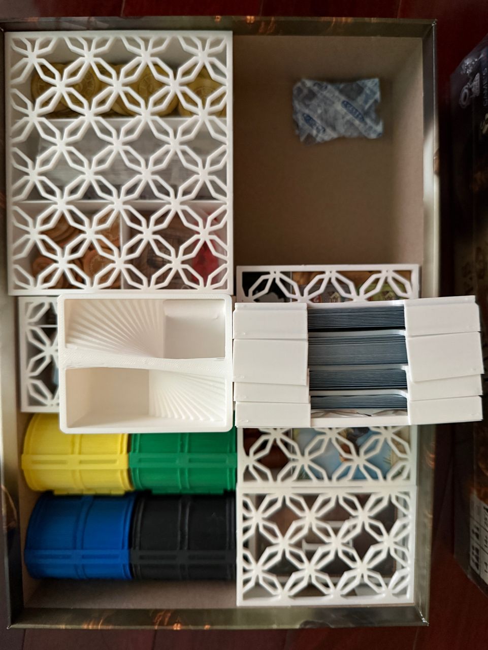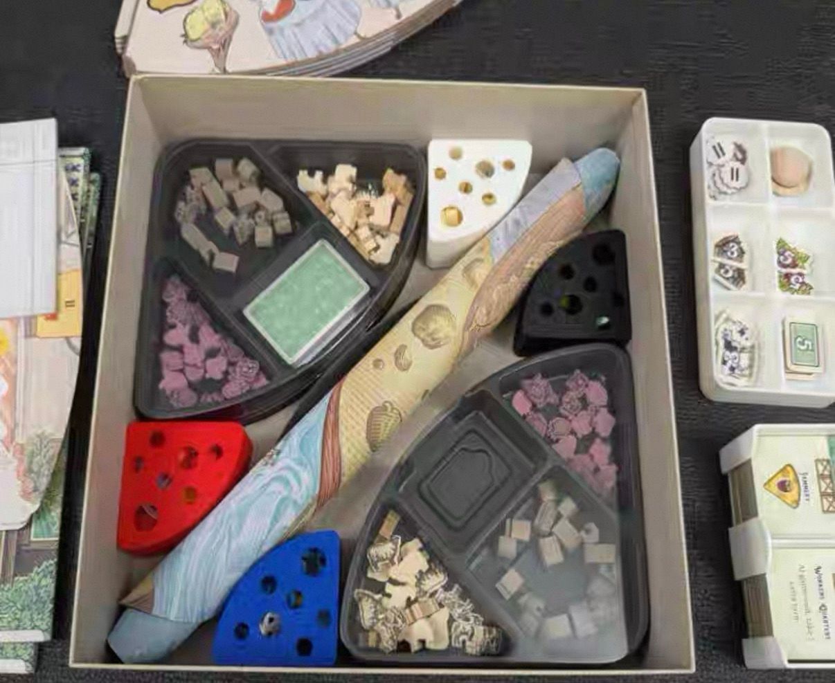 玩家收納盒為彩色寶箱形狀,內附一個小型骰塔