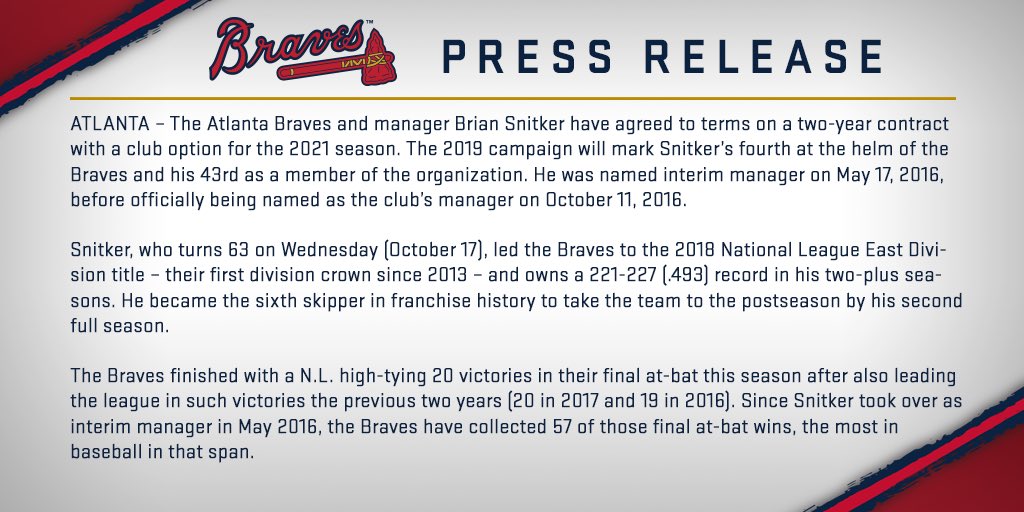 推 inferce : Snitker延長兩年合約加2021 club option 10/15 22:35