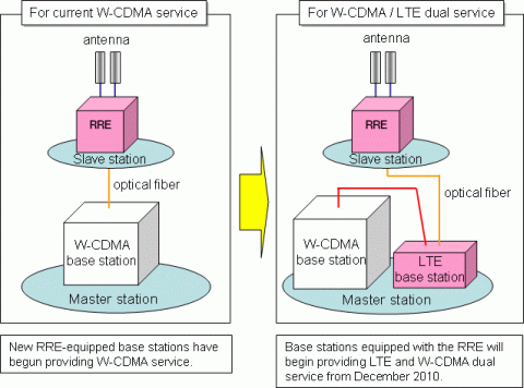 NTT DOCOMO打算在既有的W-CDMA基地台上加裝一個LTE基地台,除了預計於明年12月啟用