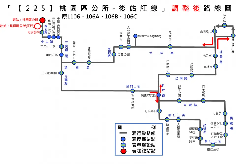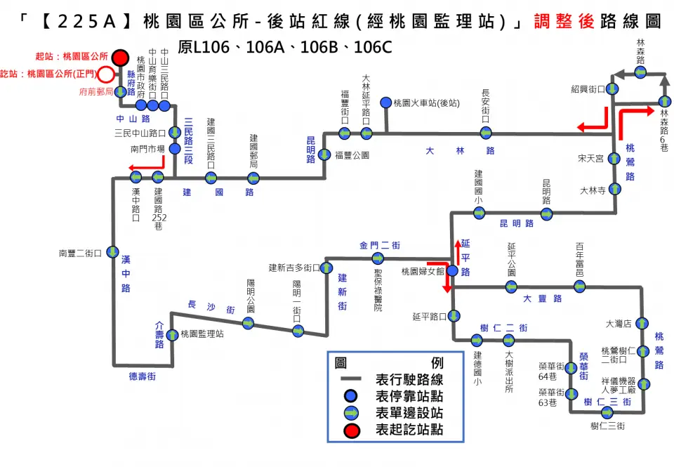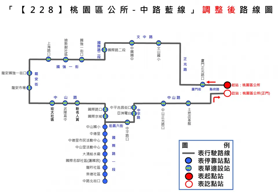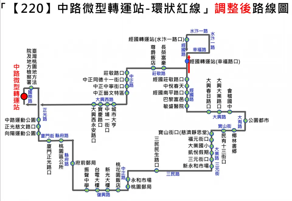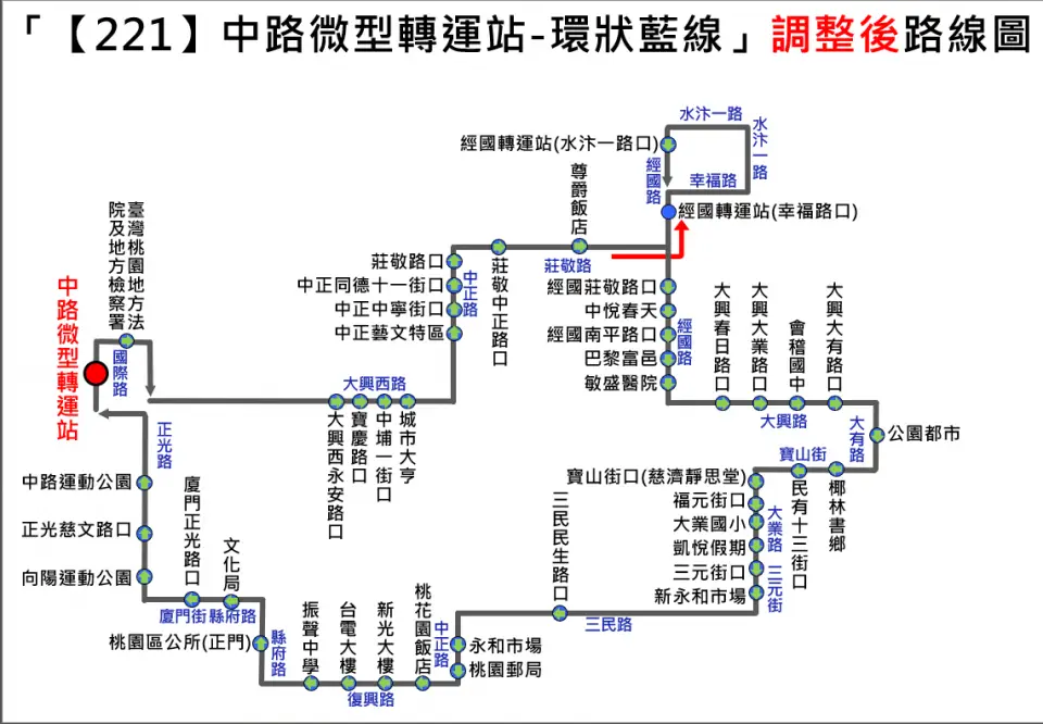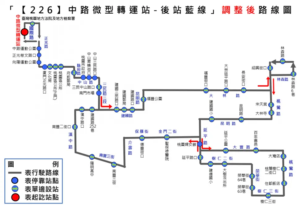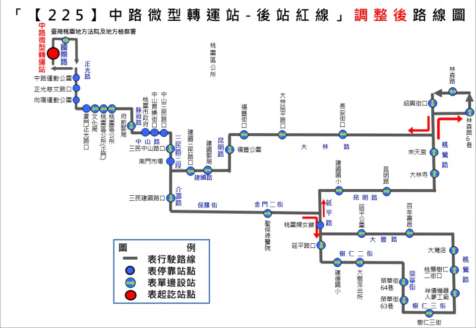 公所」站改至中路微型轉運站發車,「桃園區公所」改列為沿線中途停靠站,民眾仍可於