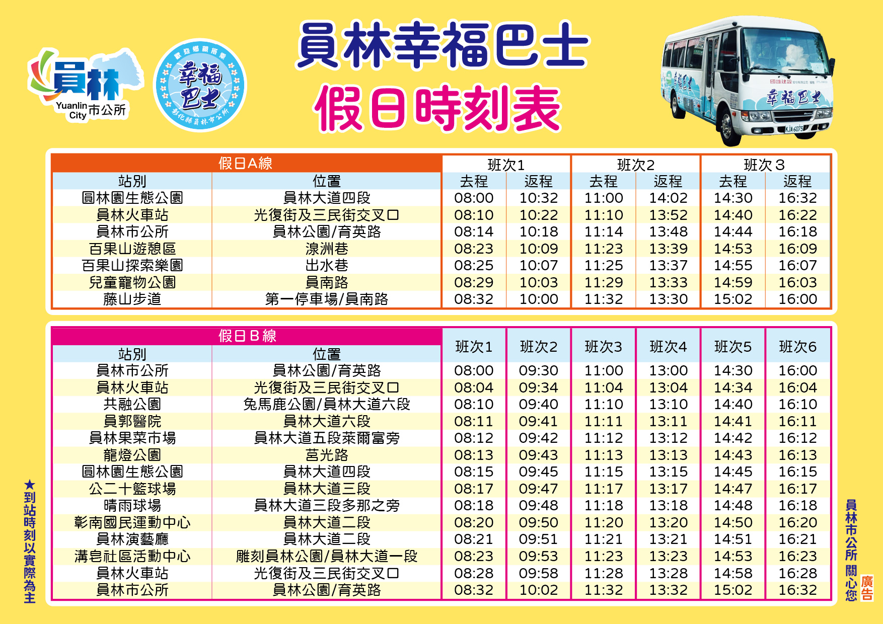 員林市幸福巴士目前假日是二路線行駛。圖/員林公所提供