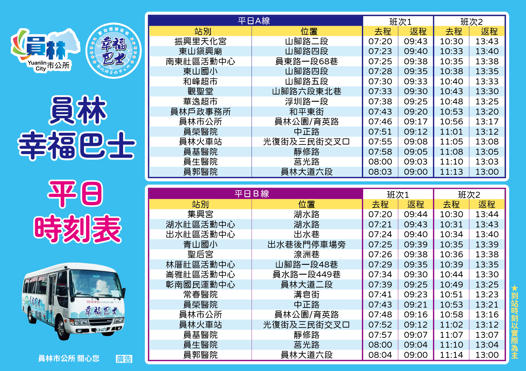 員林公所初步計劃,原本平日的二條路線,將變成一條固定路線,另一幸福巴士接受學校