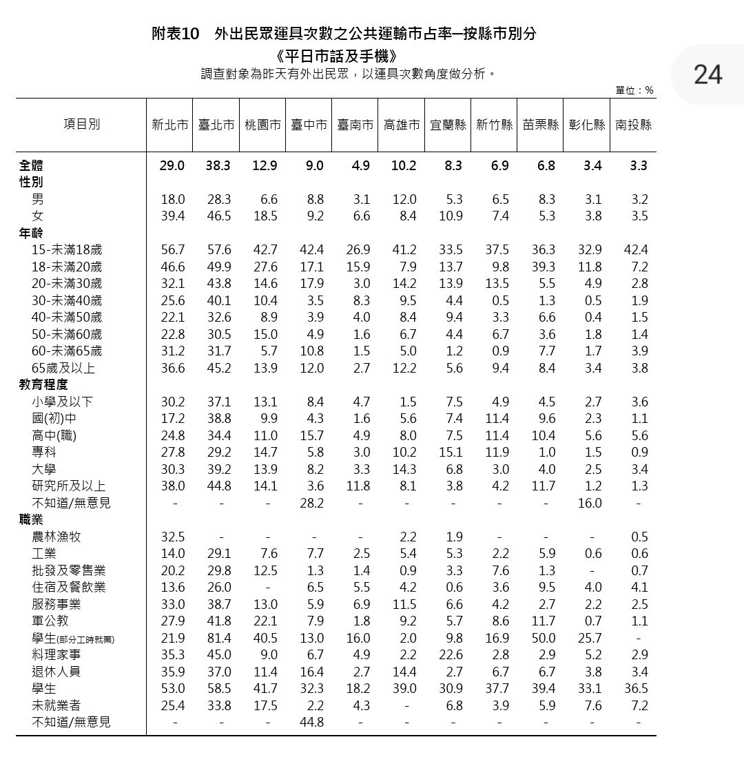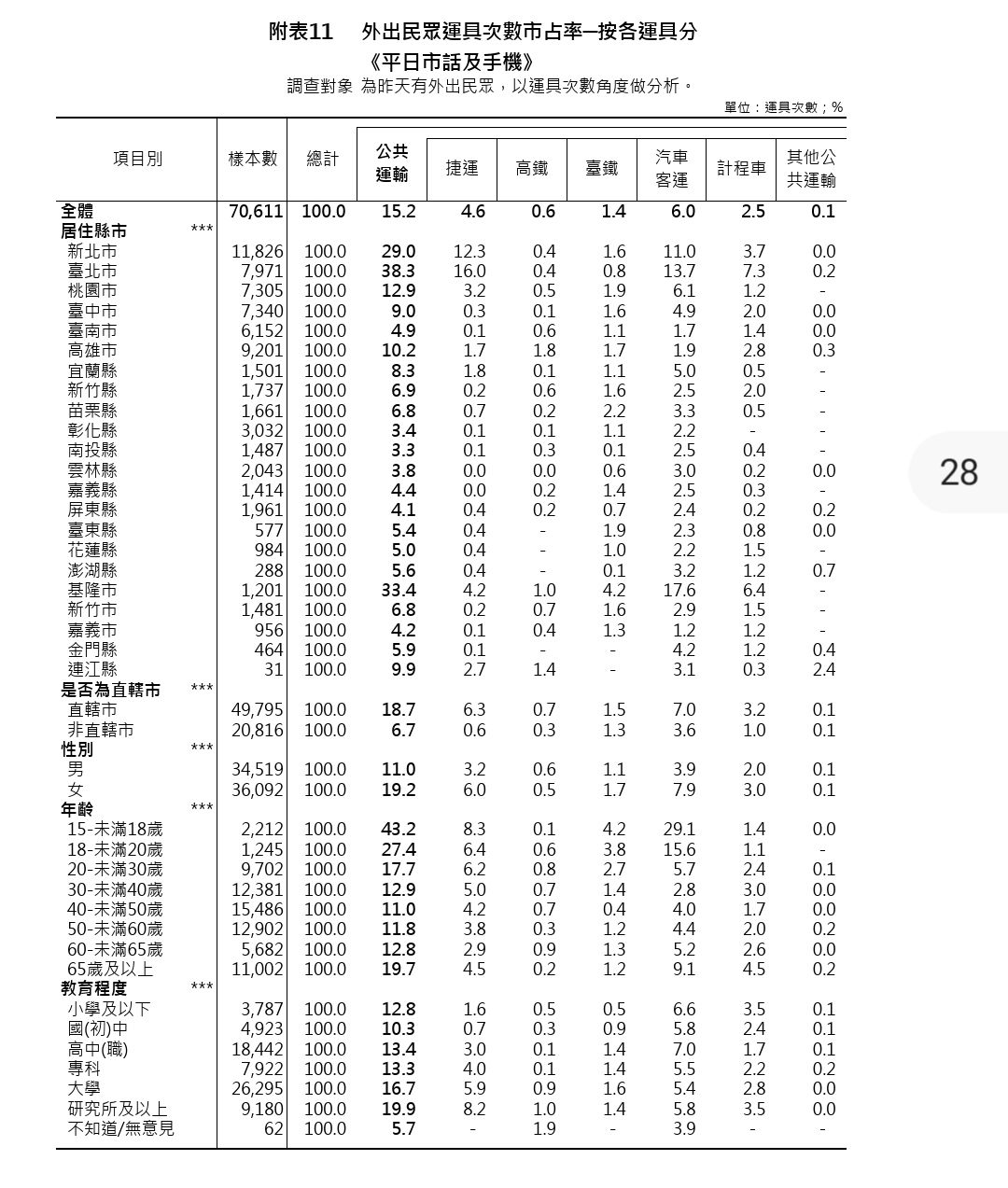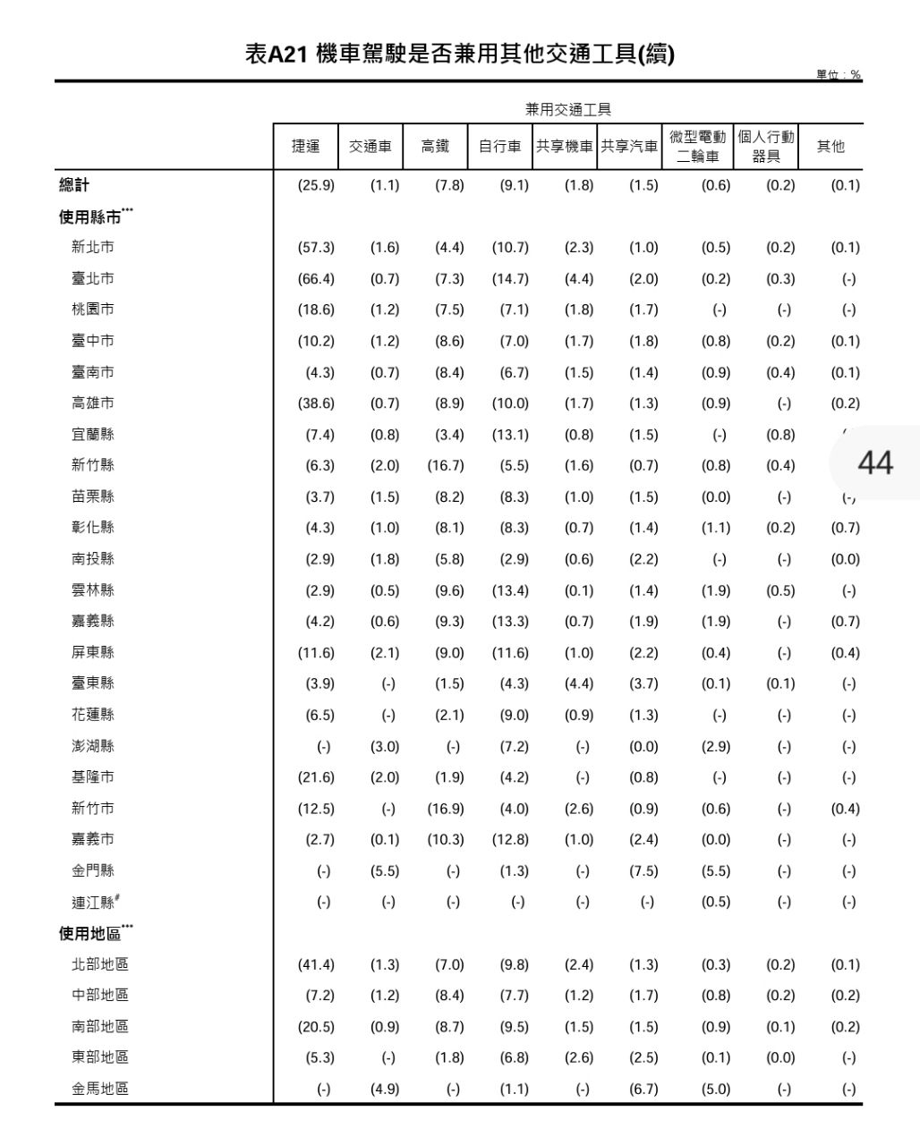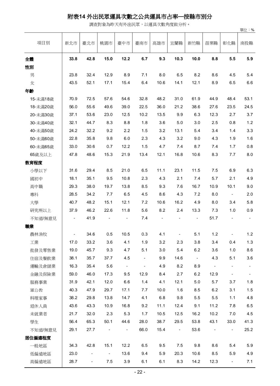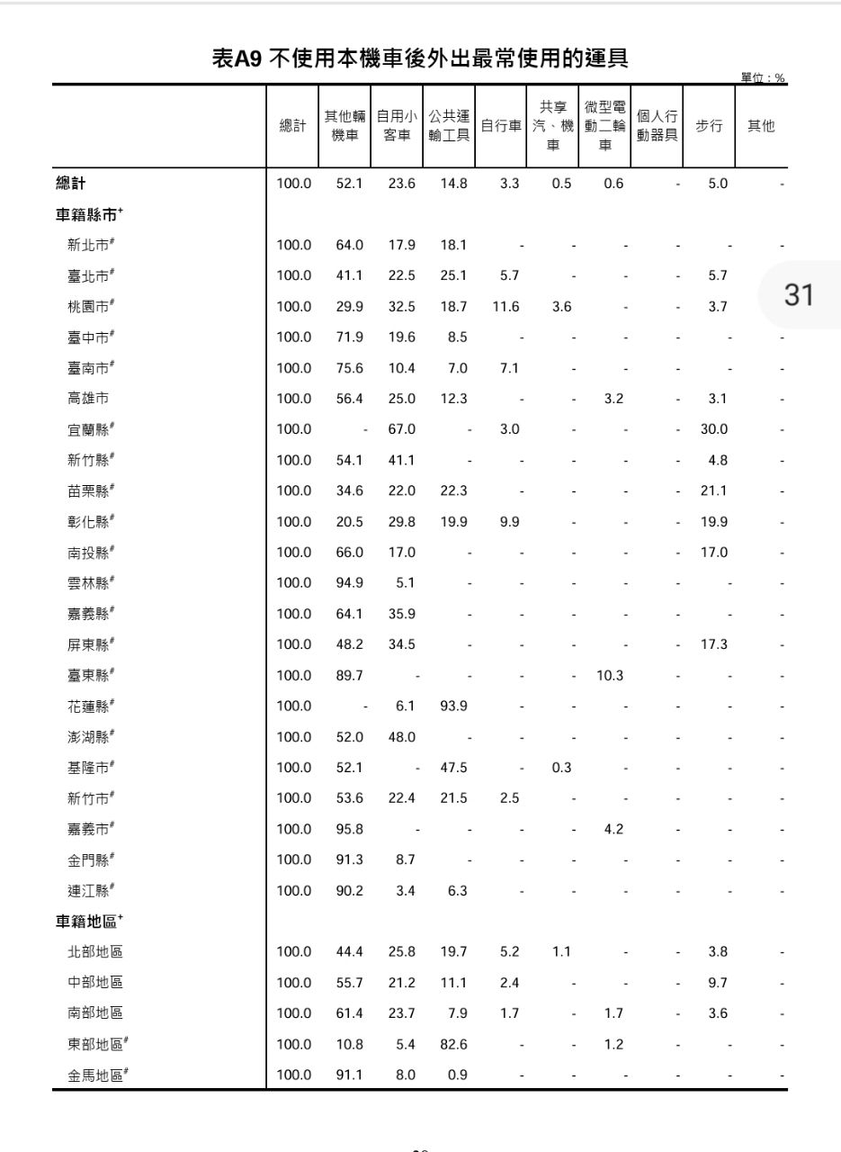 → kutkin: 表11 按照縣市與運具區分 04/24 07:16