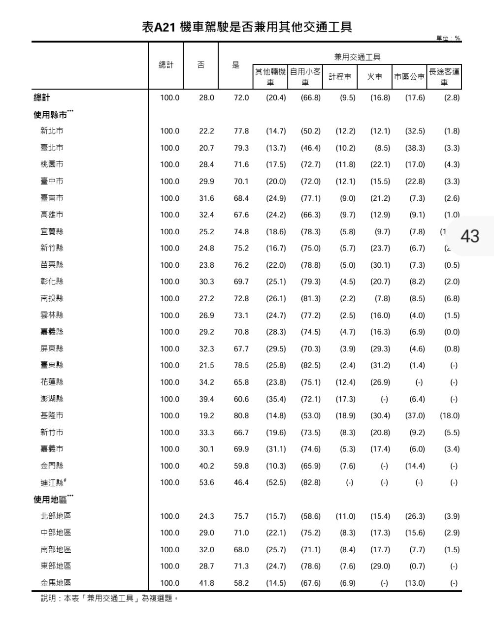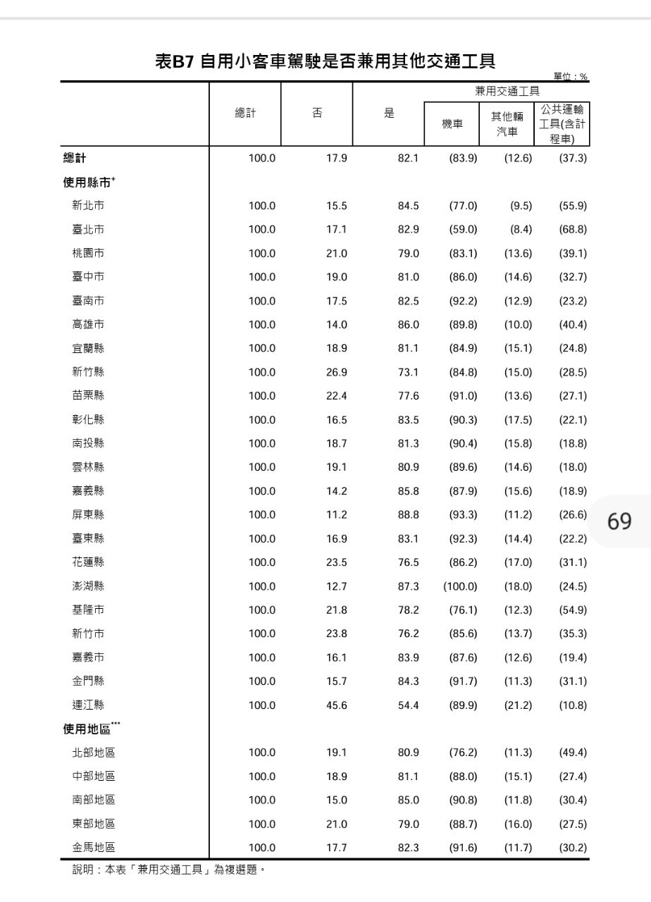 → kutkin: 表A9不使用本機車其他運具 04/25 09:22