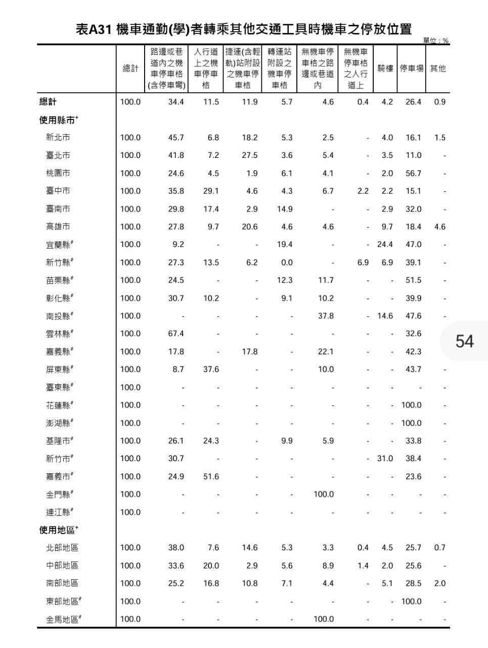 推 kutkin: 表A31 機車轉乘他運具 35.8%路邊車格 29.1%人行道車格 04/25 09:02