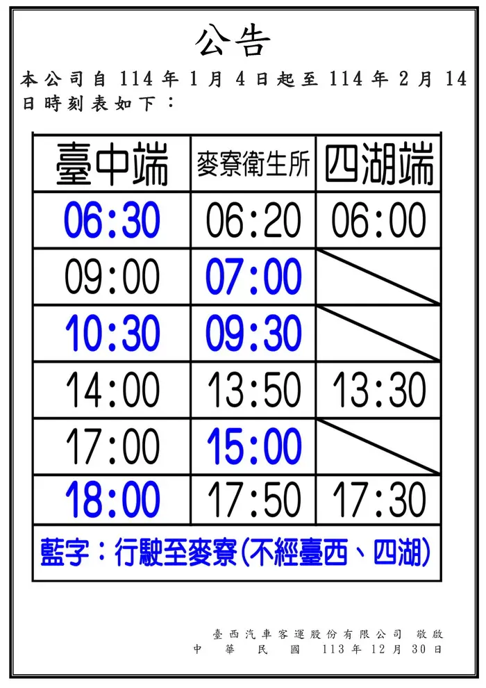 資料來源 台中客運/臺西客運