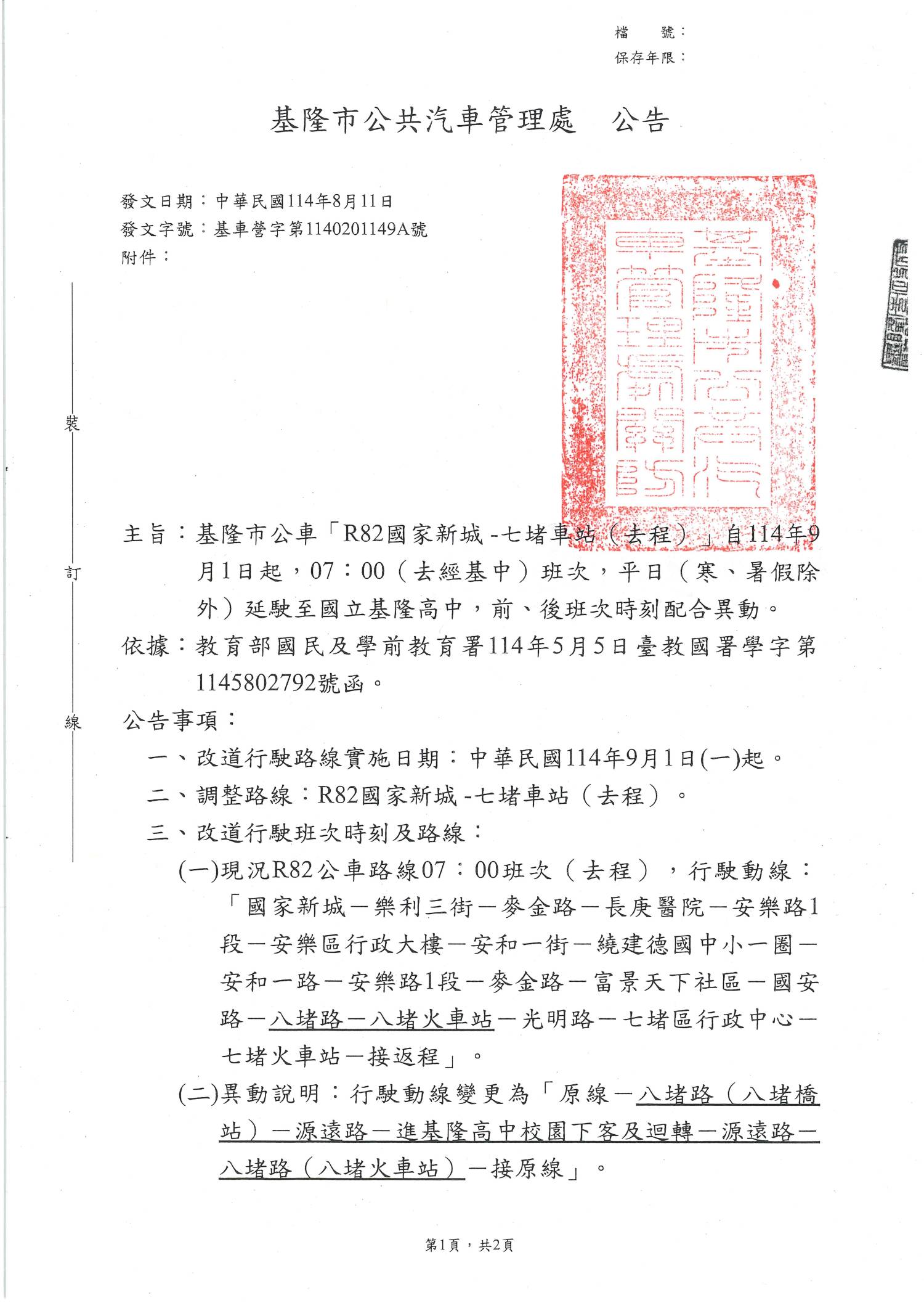 資料來源 基隆市公車處公告