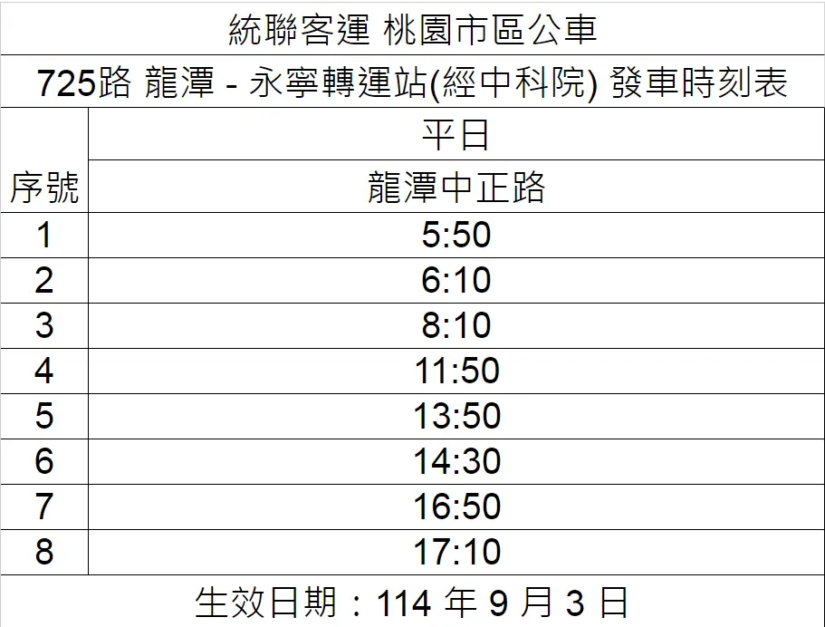 營運路線 725 龍潭—永寧轉運站(經中科院)