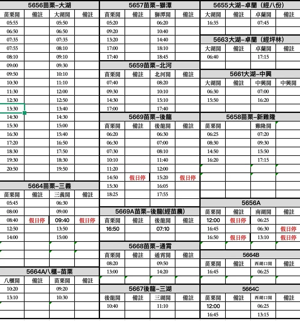 苗栗開0720延後為0730 1600提前為1530 1640延後為1650 1810延後為1825
