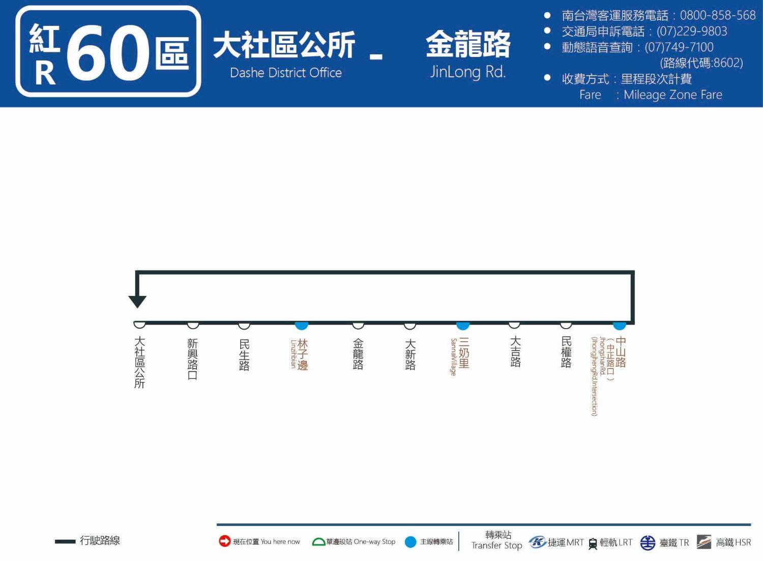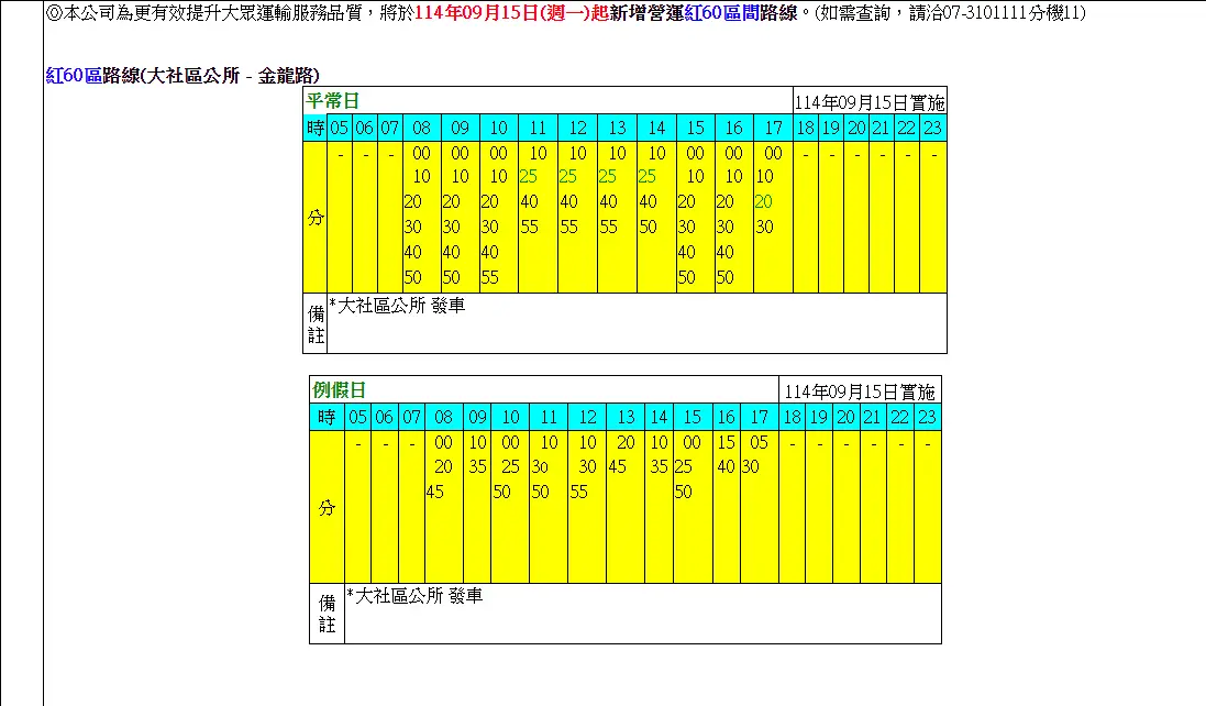 營運路線 紅60區間車 大社區公所—金龍路