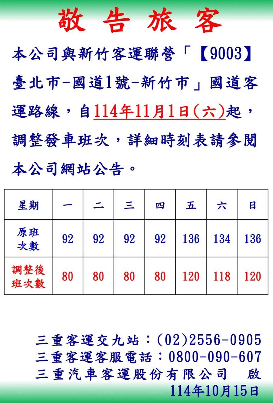 資料來源 三重客運公告