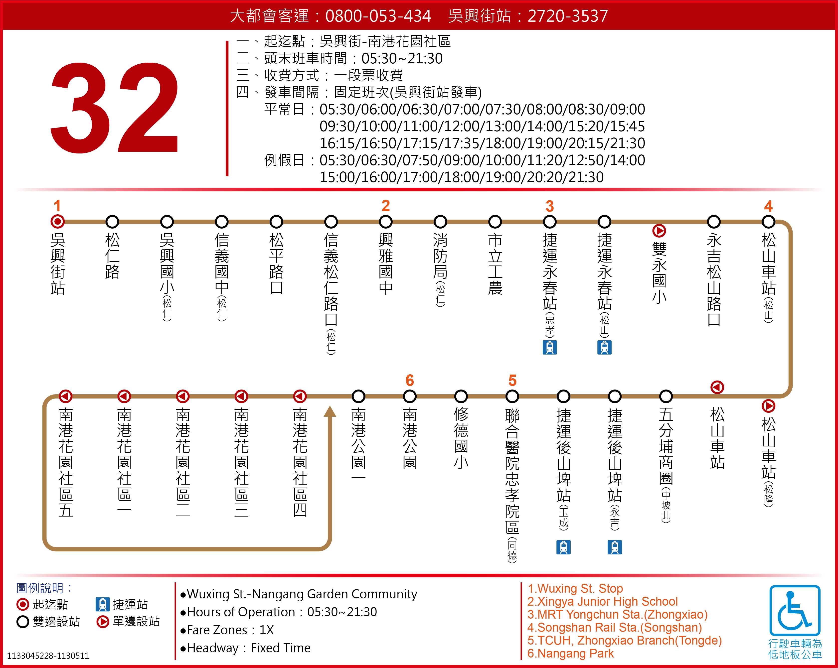 . 發車站位: 吳興街站 → 成福路停車場 (路線起迄對調)