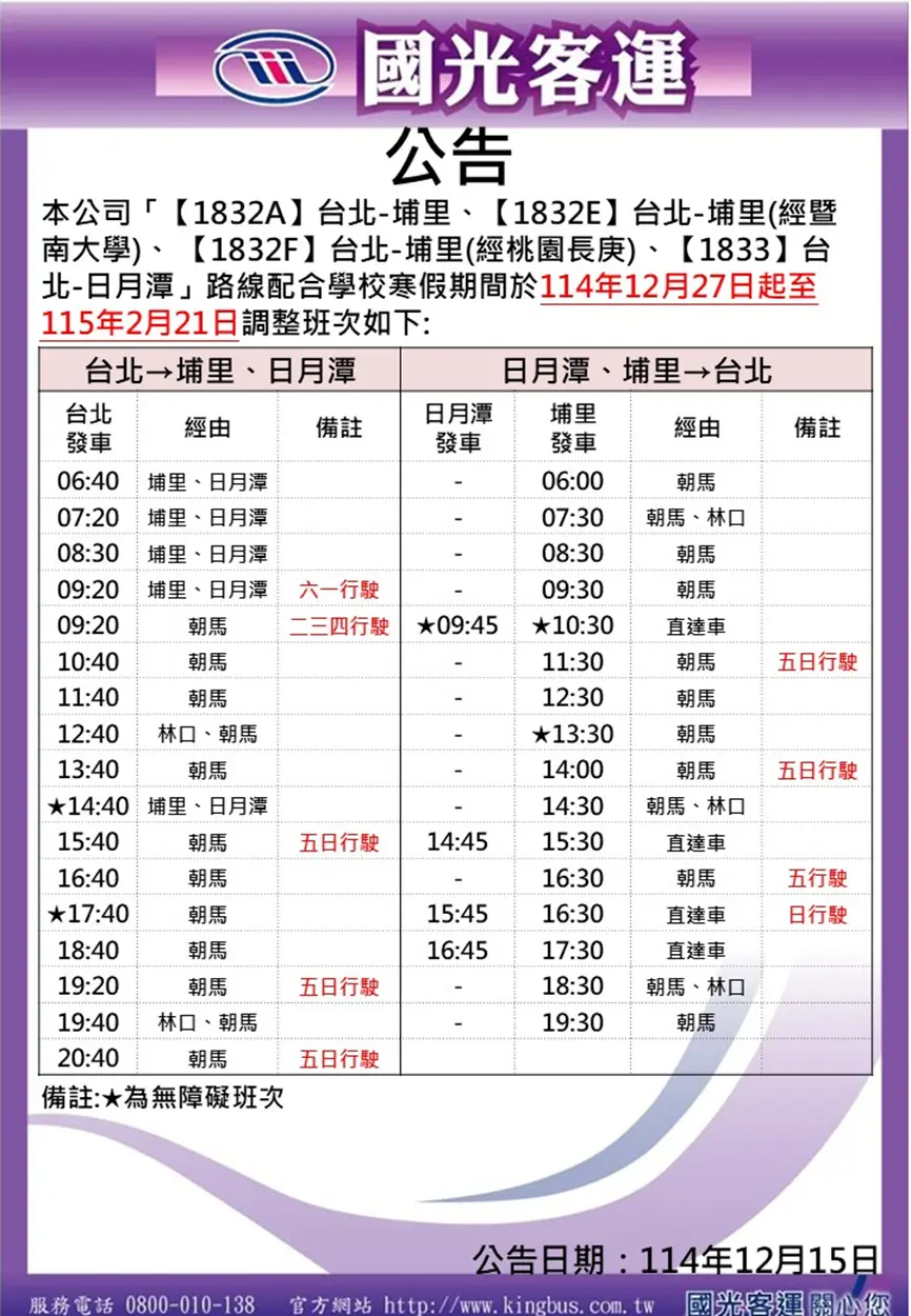 日月潭 大學 埔里站 行駛日期