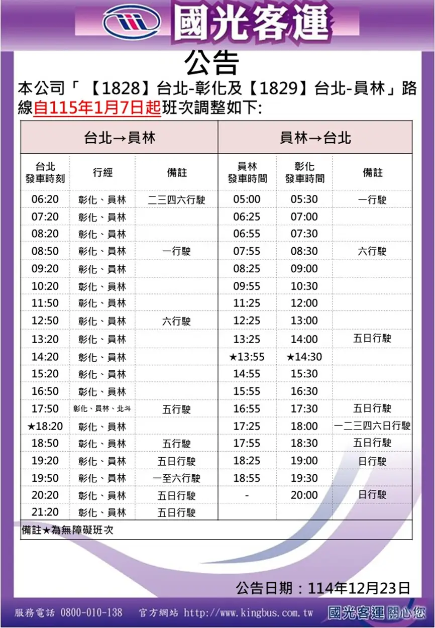 彰化、員林系列路線調整發車班次 & 時間: