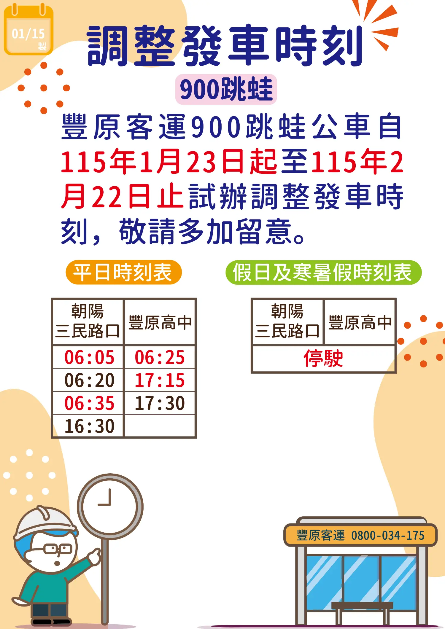 900跳蛙 由雙向10班次調減為朝陽三民路口4班次、豐原高中3班次