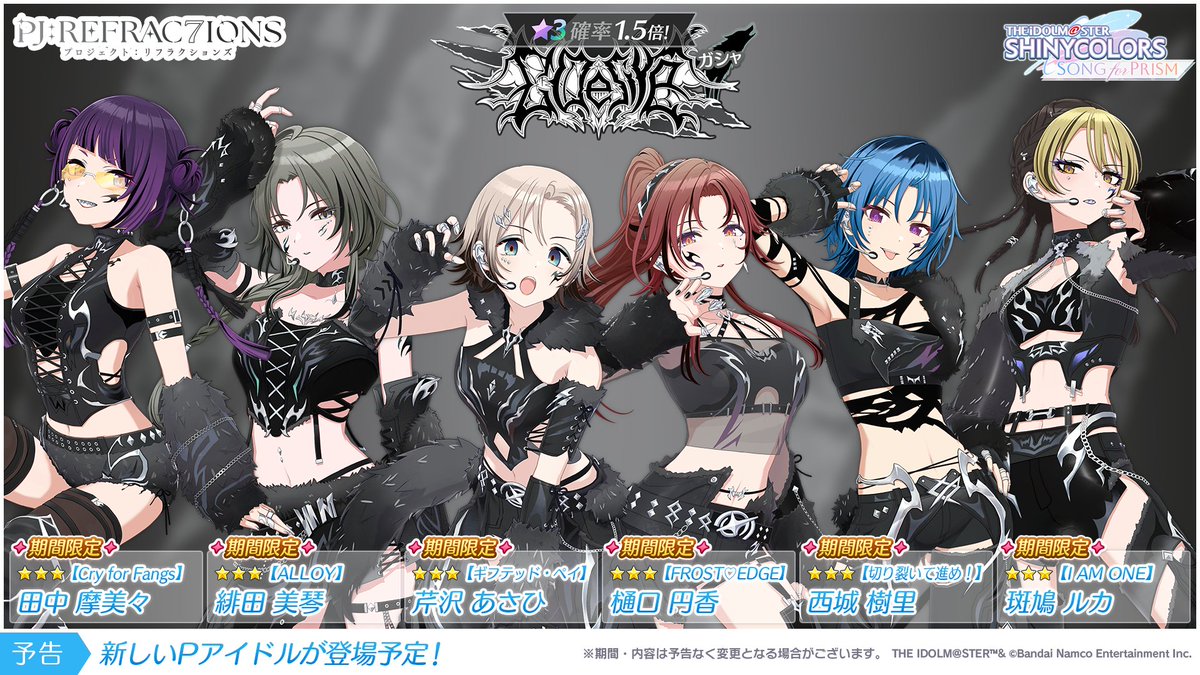 【PJ: REFRAC7IONS 新ユニット メンバー発表!】 新ユニット『Σ Desire』(シグマディザイア)が 1月31日より登場予定ですよ~ メンバー 芹沢 あさひ 樋口 円香 緋田 美琴 斑鳩 ルカ 西城 樹里 田中 摩美々
