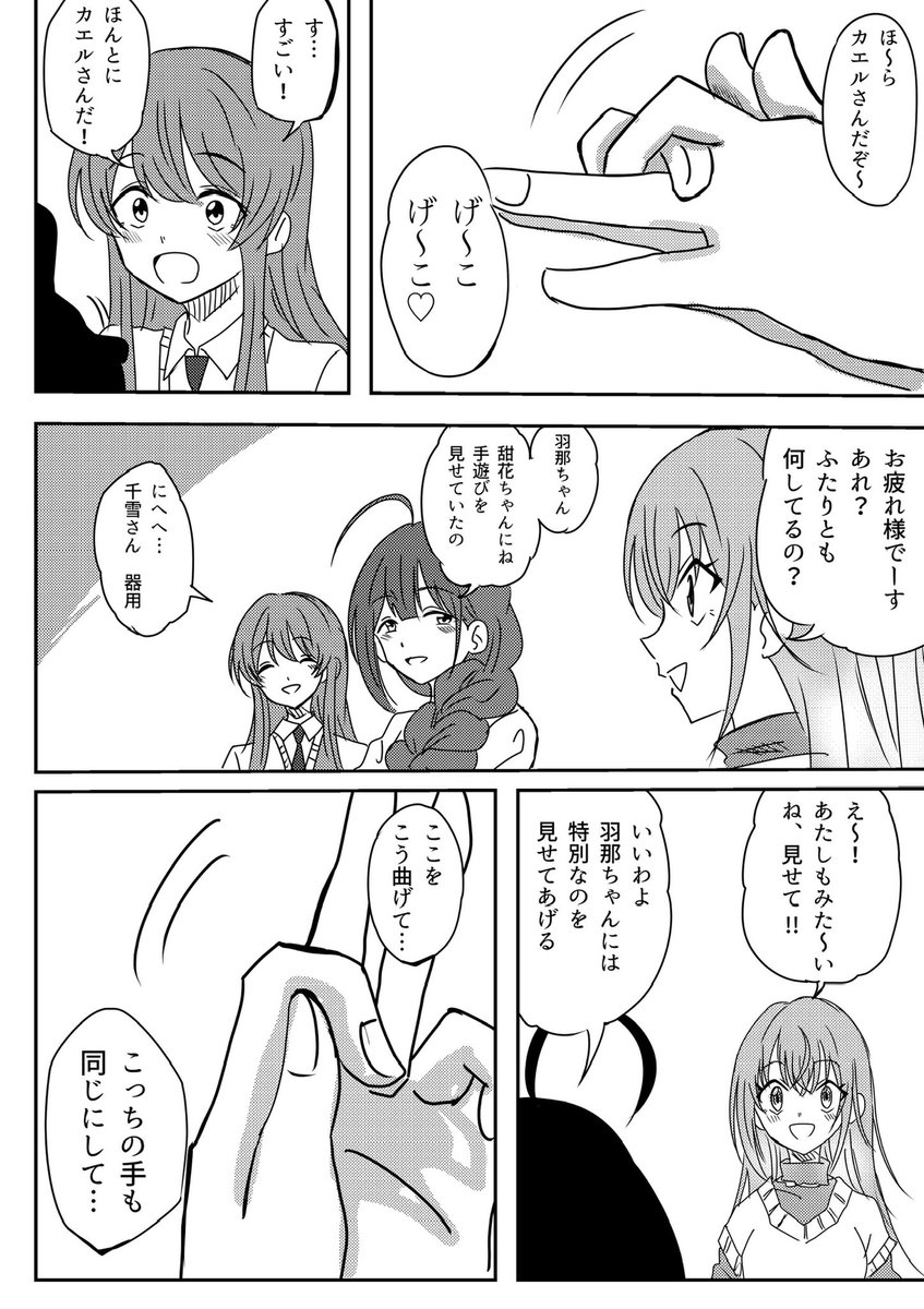 "羽那醬 我在表演手影戲給甜花醬看喔"
