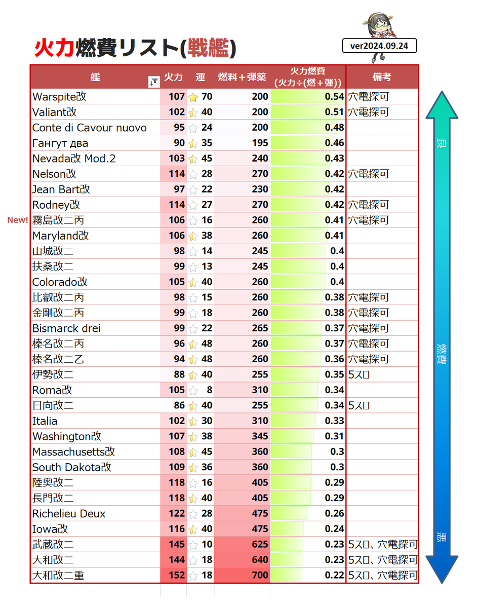 標題[艦收] 戰艦火力與食量比較表更新了
