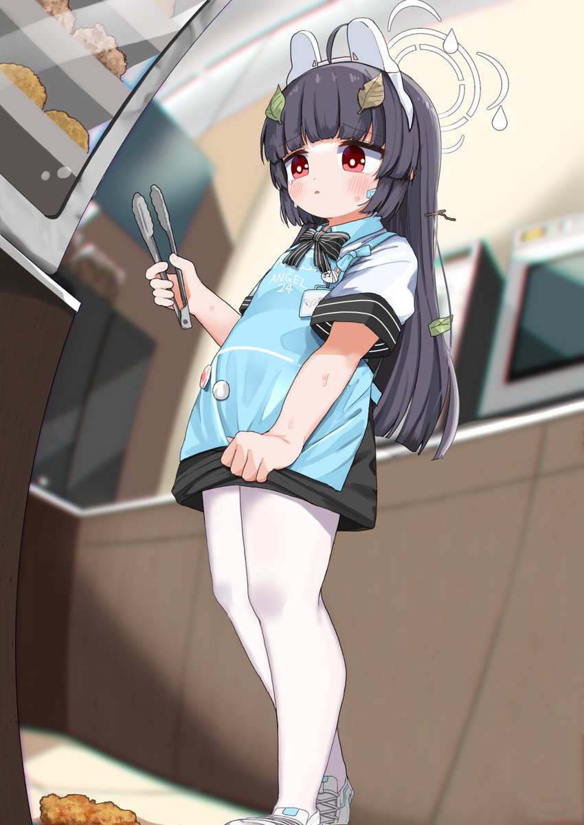 裙子不小心被撩起來,好險在櫃台後沒被看到