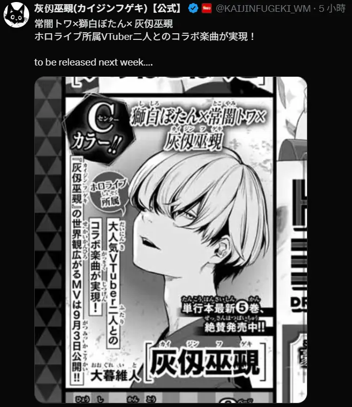 → yukimura0420: 常闇トワ×獅白ぼたん× 灰仭巫覡 合作樂曲 08/27 14:21