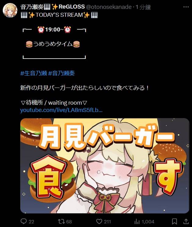 → blackone979: Kronii今天第一次吃摩斯漢堡 讚不絕口 只是嫌小 09/04 08:55