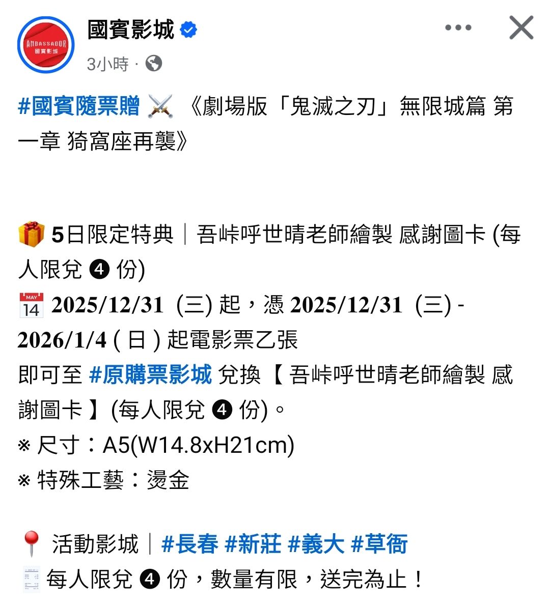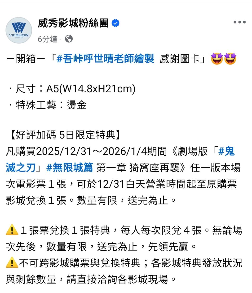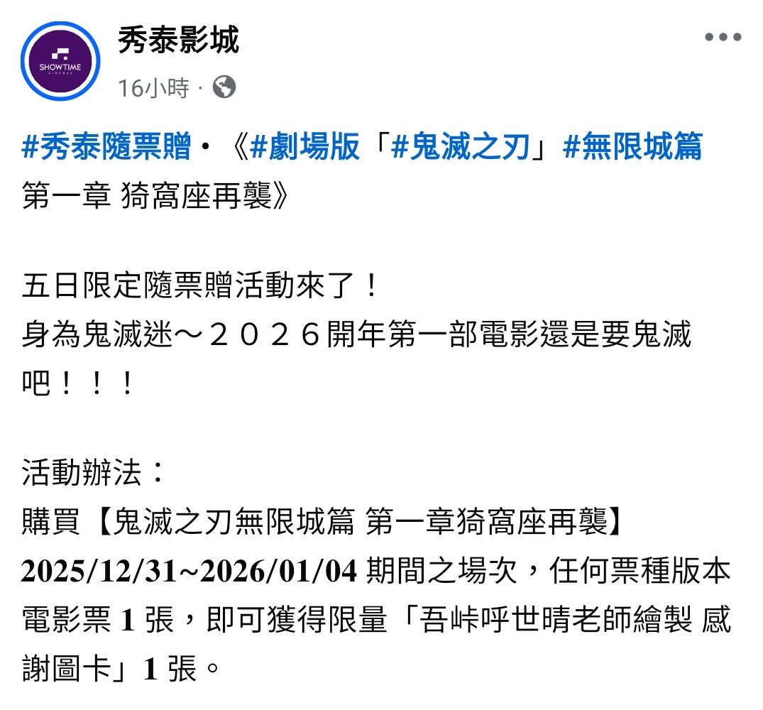 推 razzL1225: 威秀場次更新規則,鬼滅也是照走... 12/29 22:15