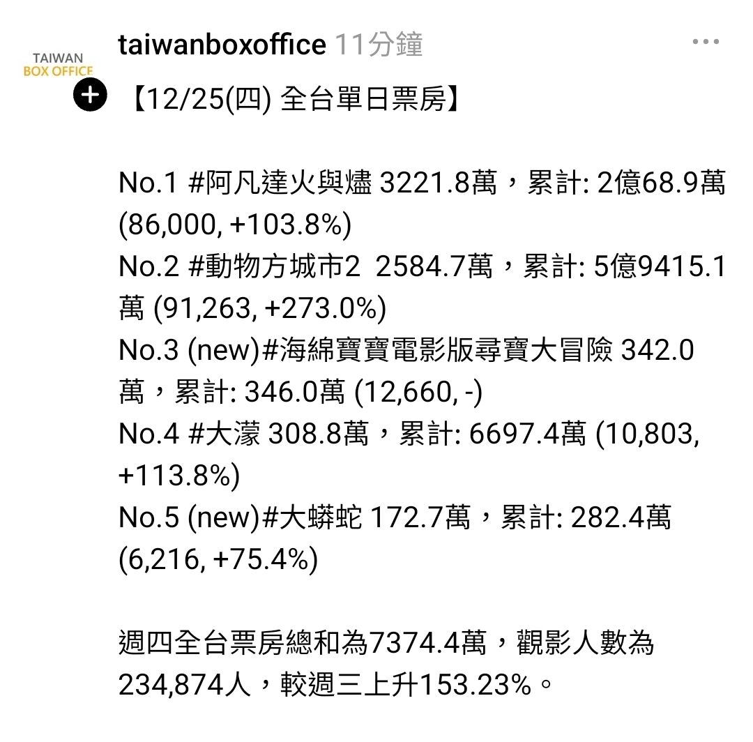 → pupu20317: 票房觀測12/18 17:20