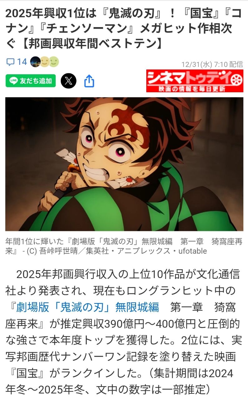 → pupu20317: 韓國網站沒有休假,所以鬼滅日本票房先用韓國來源估算12/30 10:21