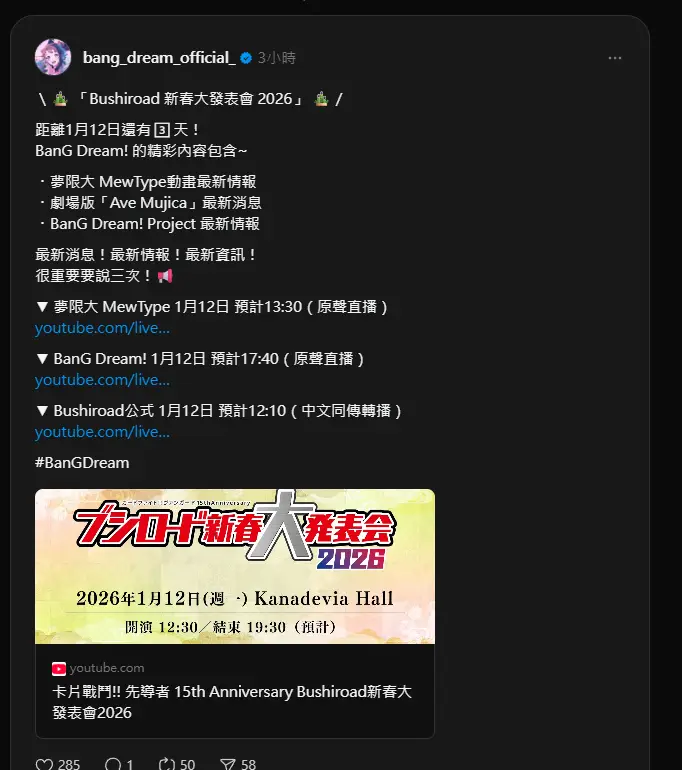 : #Bushiroad 新春大發表會2026 全球同步直播!